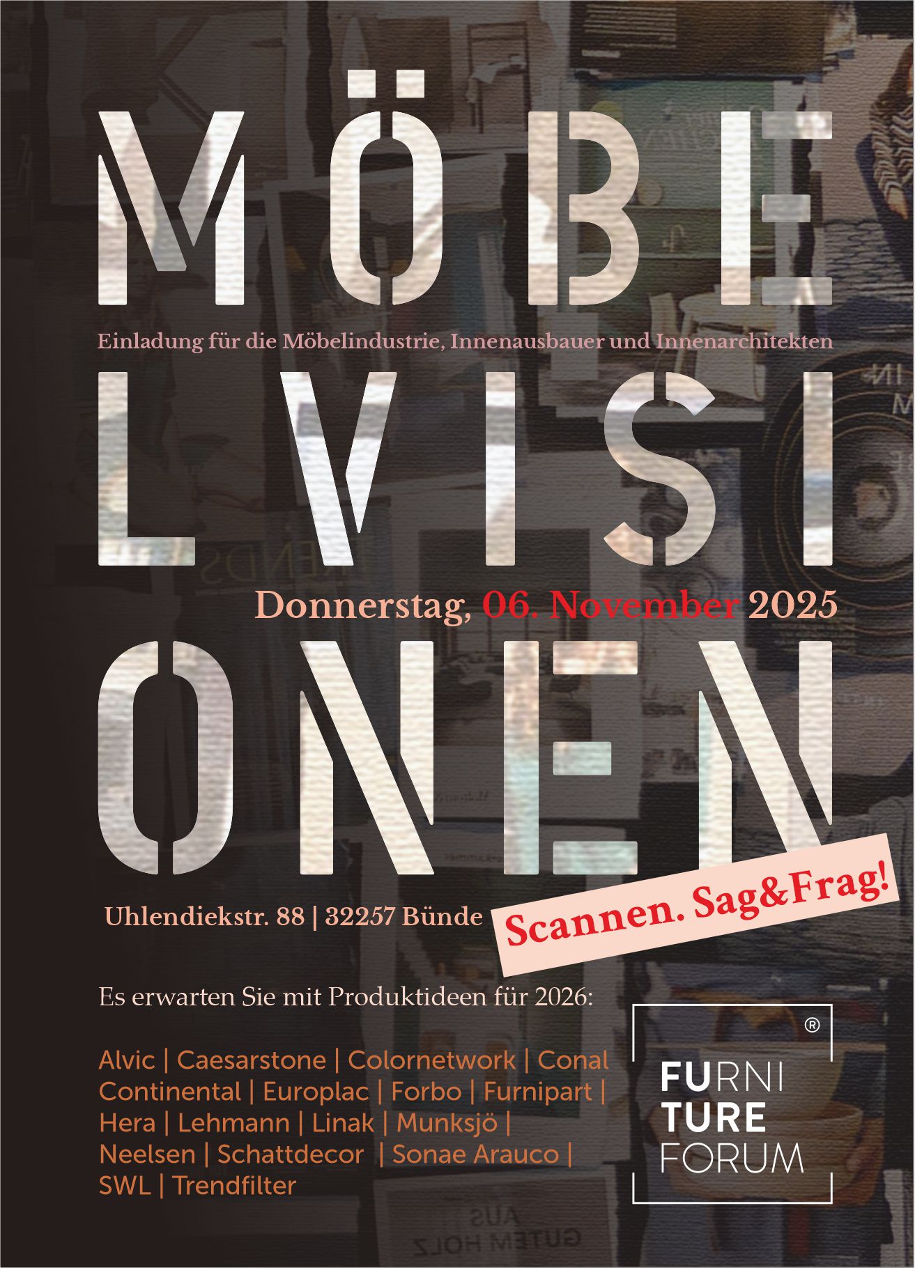 Die Möbelvisionen am 06.11.25 im FURNIUTURE FUTURE FORUM mit neuem, interaktivem Format zur Diskussion